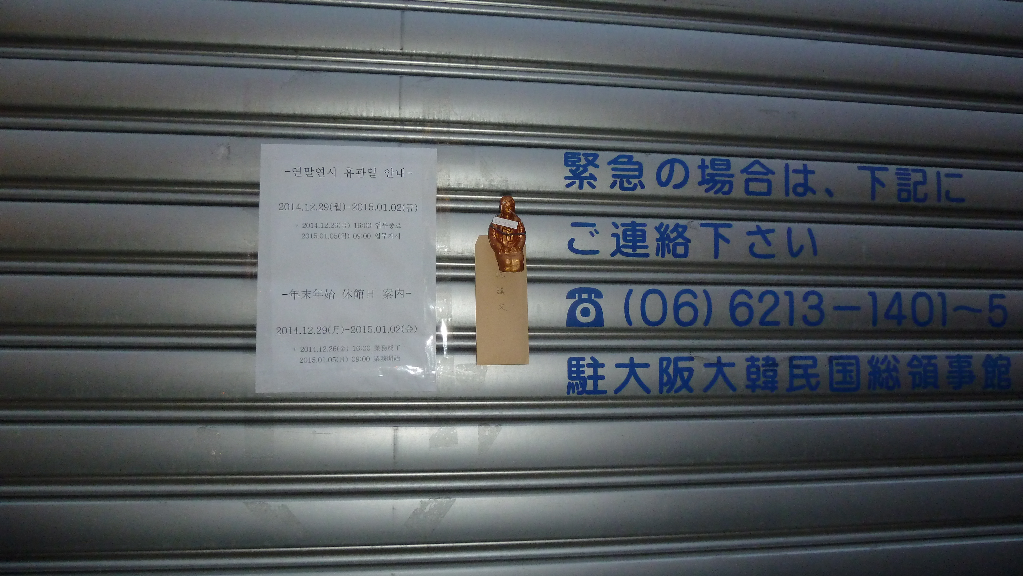 朝鮮人の分際で、年末年始の休みに入っており、シャッターが閉まっており、ポストもないので、今回は磁石つきの「第5補給品クリップ」を使って、シャッターに貼り付けて来ました。