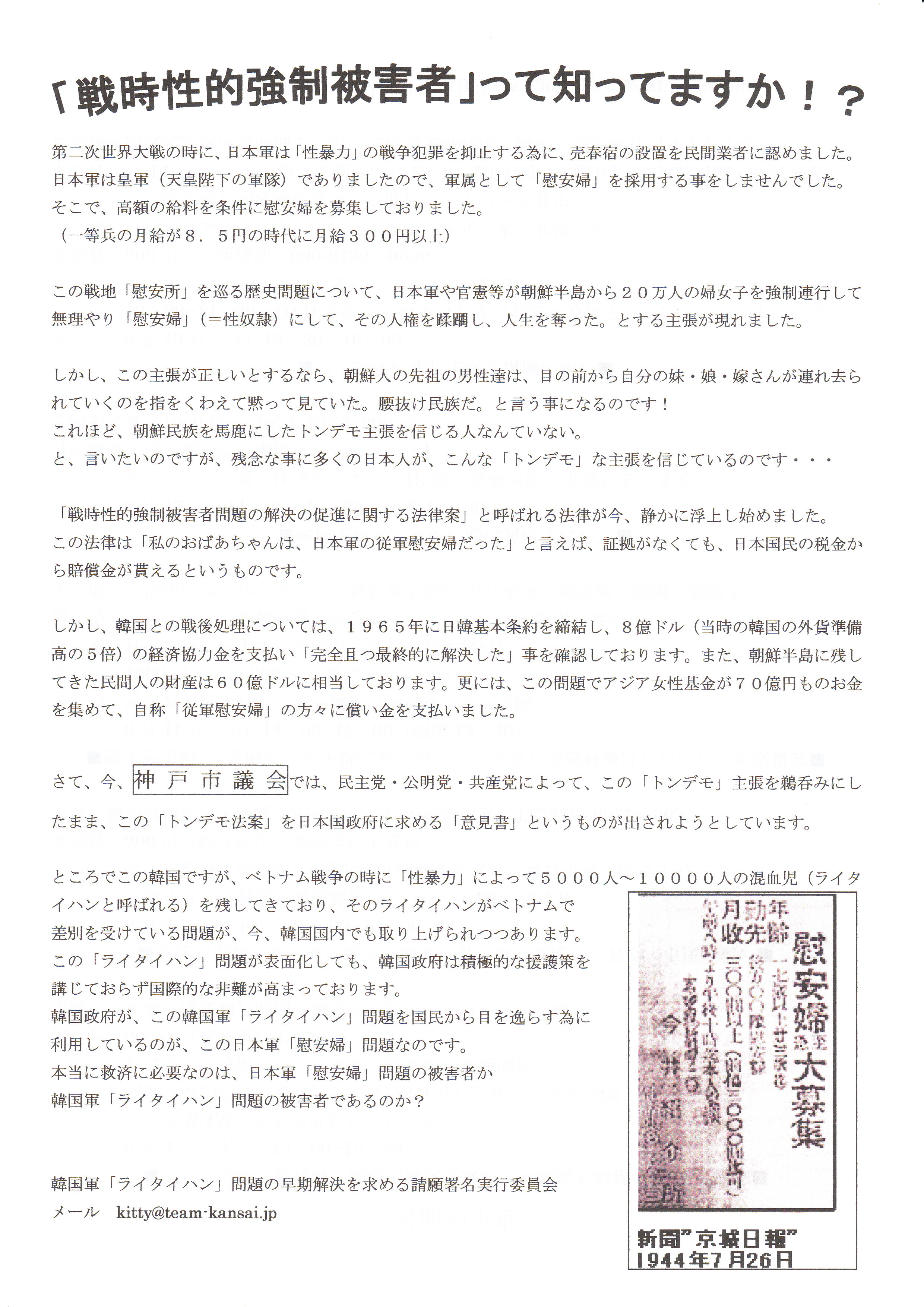 韓国軍「ライタイハン」問題の早期解決を求める請願署名実行委員会メール