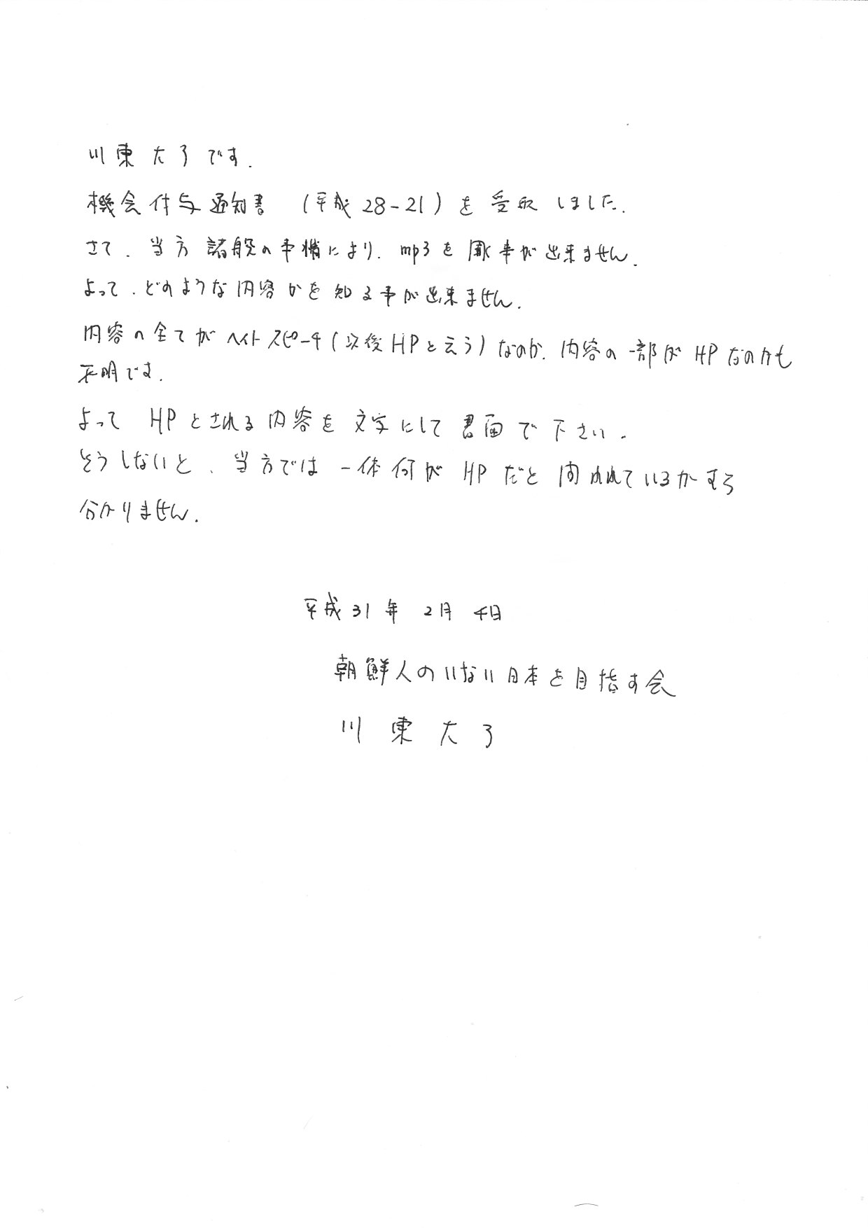朝鮮人のいない日本を目指す会・川東大了