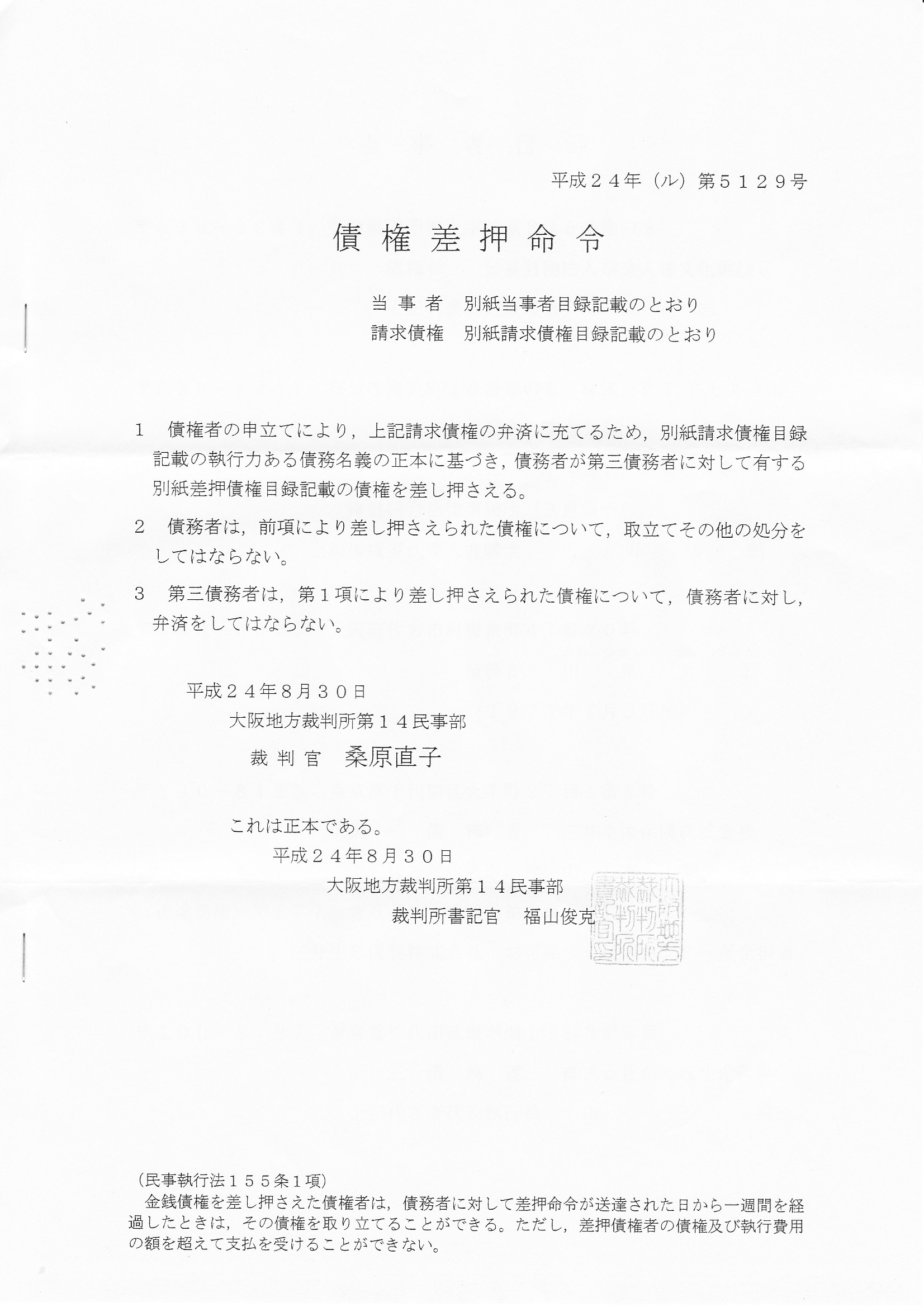 川東へ債権差押命令(1~3ページ)