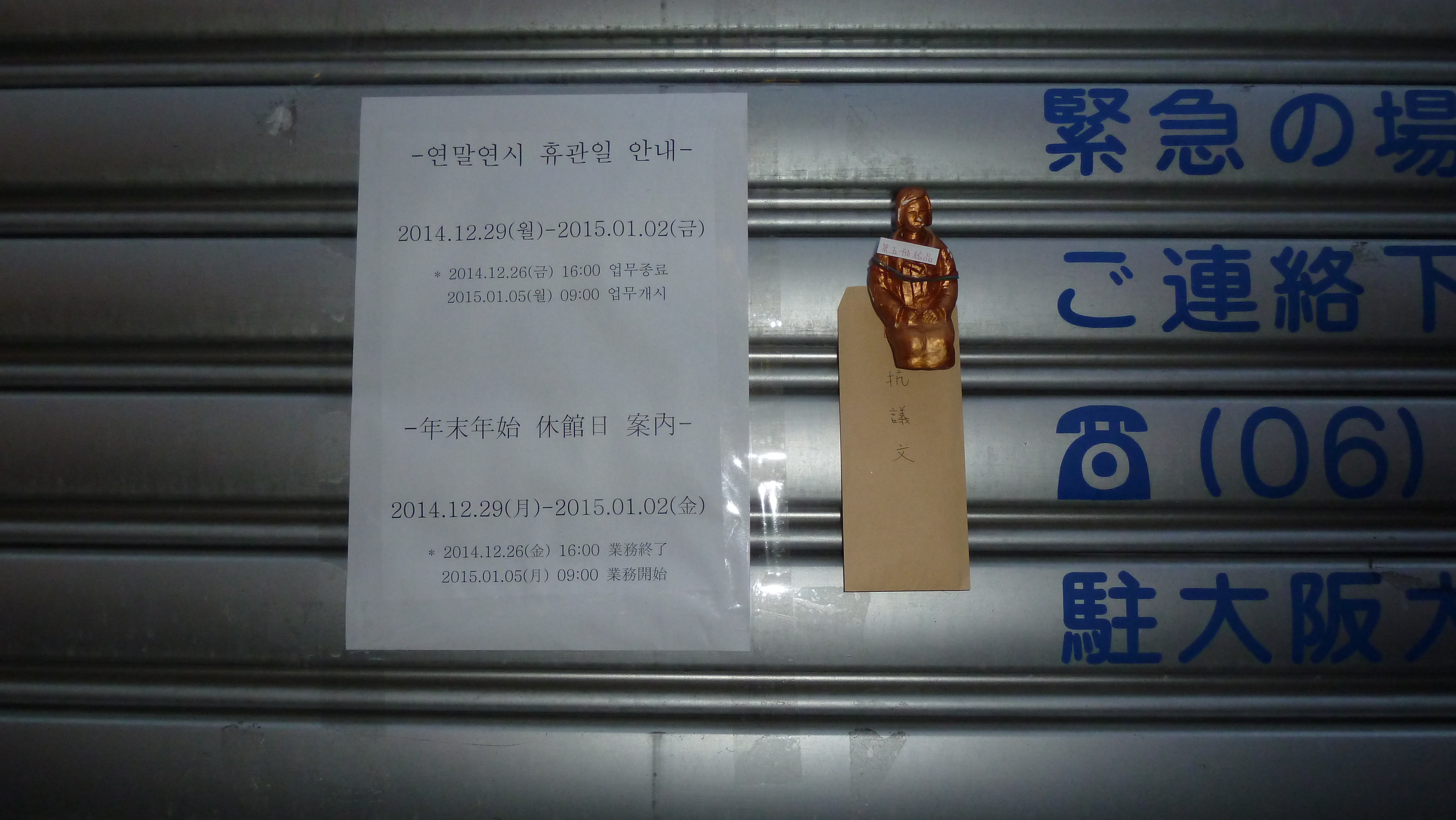 朝鮮人の分際で、年末年始の休みに入っており、シャッターが閉まっており、ポストもないので、今回は磁石つきの「第5補給品クリップ」を使って、シャッターに貼り付けて来ました。