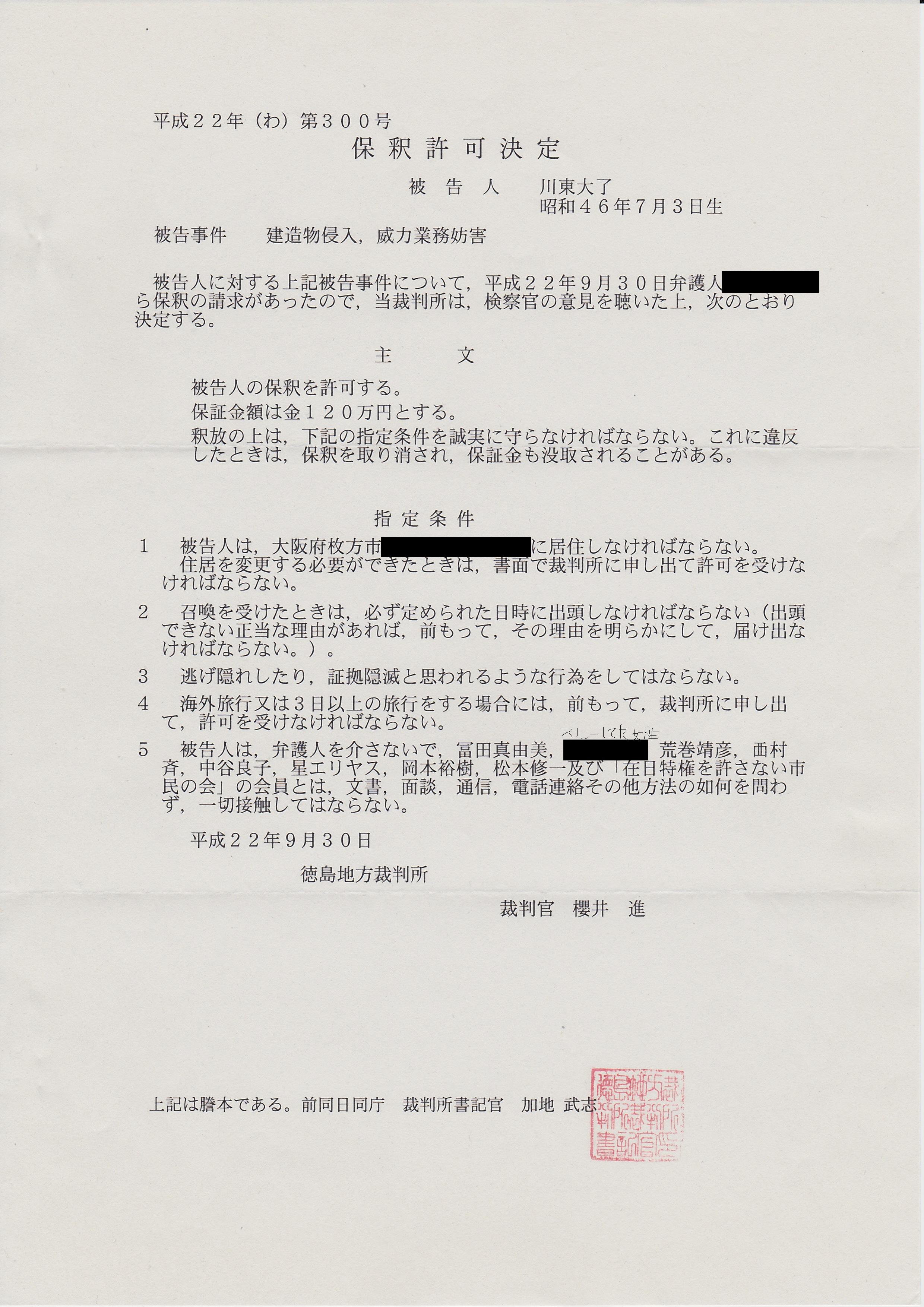ああ、そういや、この保釈許可決定の書面を特殊な能力で見ると